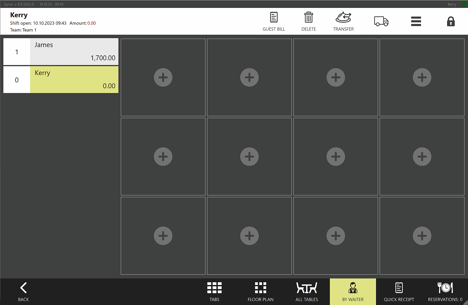 Syrve POS ma nieco inny wygląd w każdym trybie.