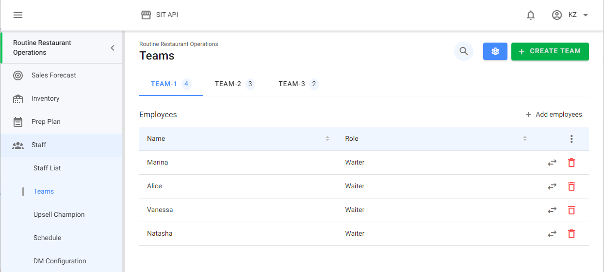 Jednemu kelnerowi może być trudno obsłużyć kilka stolików jednocześnie, zachowując wysoką jakość obsługi. Pomoc ze strony współpracowników mogłaby powodować jeszcze większe zamieszanie. Teraz możesz podzielić kelnerów na zespoły.