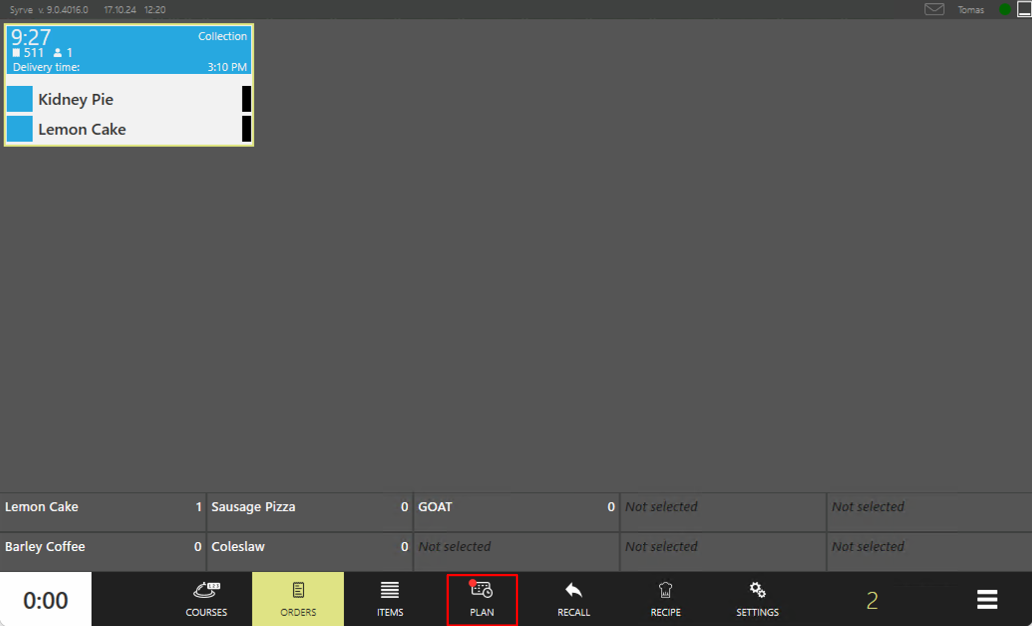 Kropka powiadomienia wyświetlana na przycisku Plan w KDS informuje personel kuchni o nowych oczekujących zamówieniach. Przeczytaj więcej o trybie Plan →