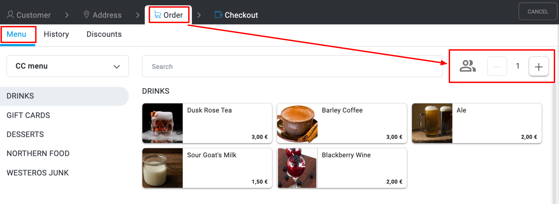 Teraz możesz wybrać liczbę klientów w zamówieniu na zakładce Menu. Pozwala to operatorom szybciej realizować zamówienia, a osoby pakujące zamówienia będą wiedziały, ile zestawów sztućców dodać.