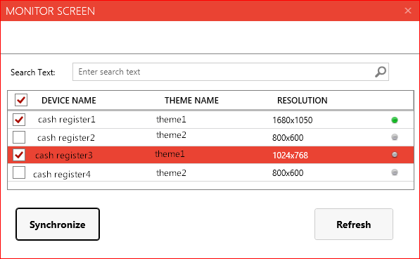 W nowym oknie zobaczysz listę dodanych urządzeń. W najbardziej prawej kolumnie wskaźniki pokazują status połączenia z serwerem dla każdego ekranu.