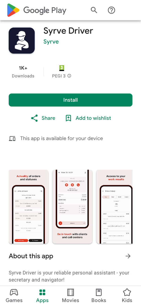 Pobierz aplikację Syrve Driver z GooglePlay lub AppStore.