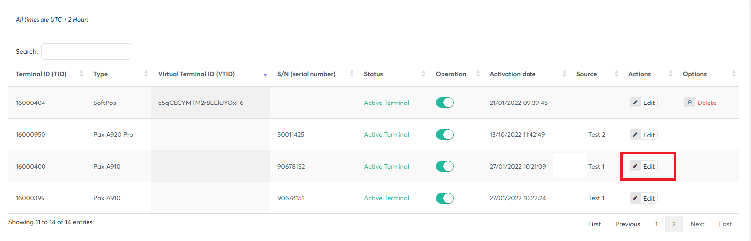 Znajdź swój nowy Terminal ID i kliknij Edytuj.