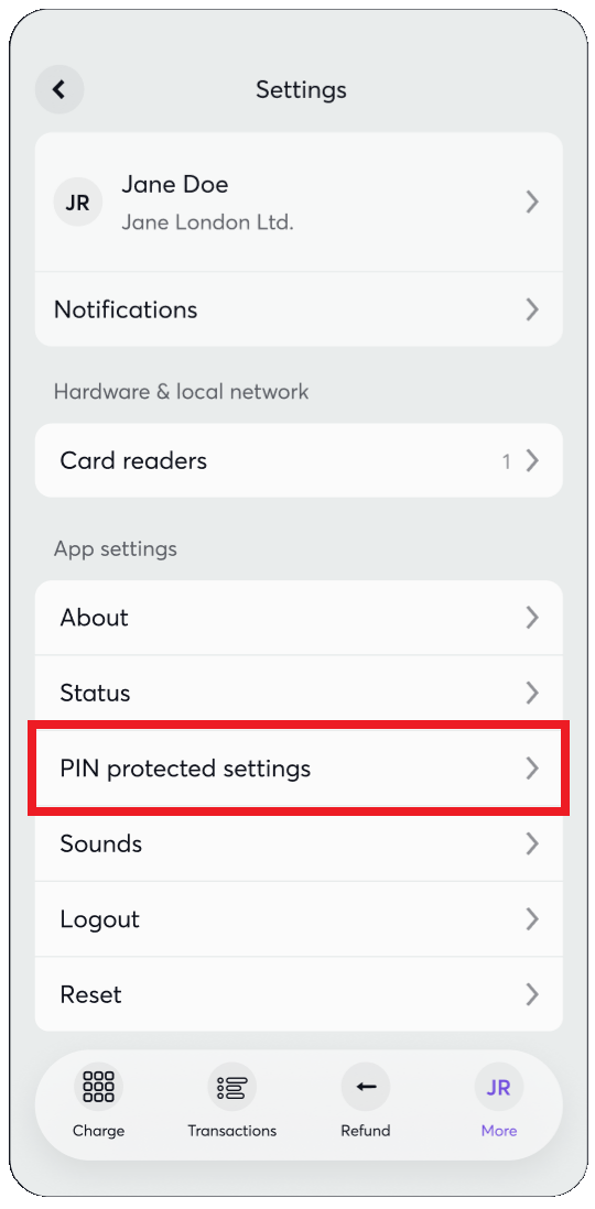 - Transakcje — Włączone (jeśli włączone, użytkownik jest proszony o wpisanie PIN-u, aby uzyskać dostęp do strony Transakcje).