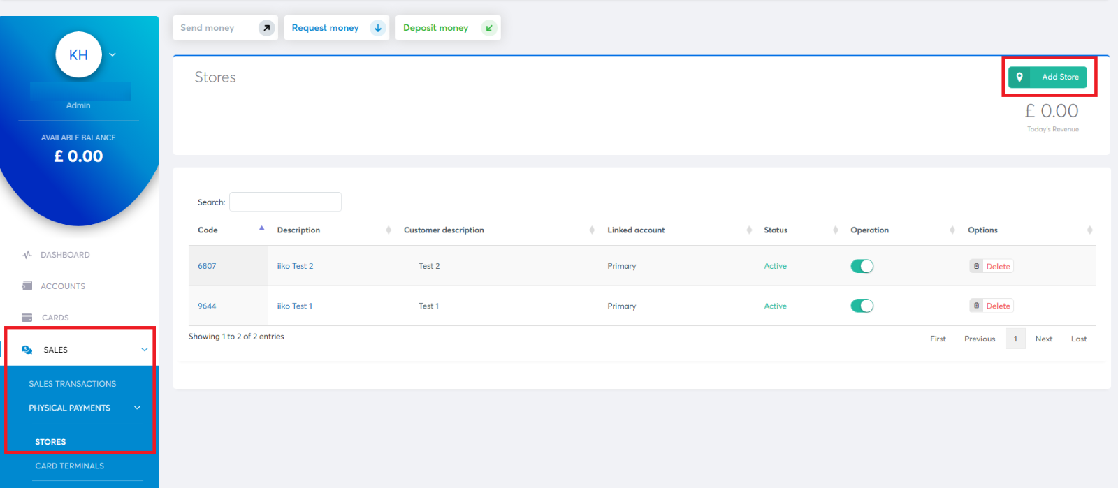 Wybierz Sprzedaż > Płatności fizyczne > Sklepy > Dodaj sklep.