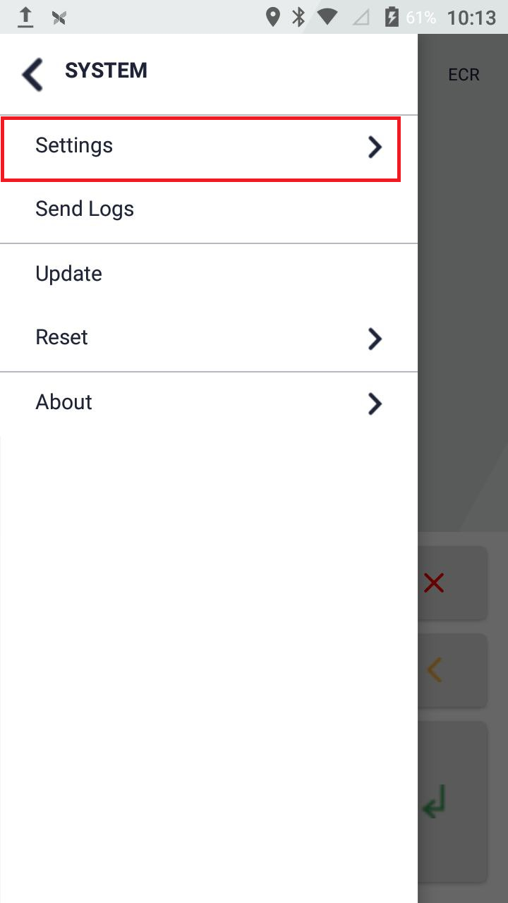 settings — parametry działania terminala, aby uzyskać parametry działania terminala prosimy o przesłanie zapytania na adres ibush@syrve.com. Prosimy o podanie nazwy sklepu oraz liczby terminali do podłączenia.