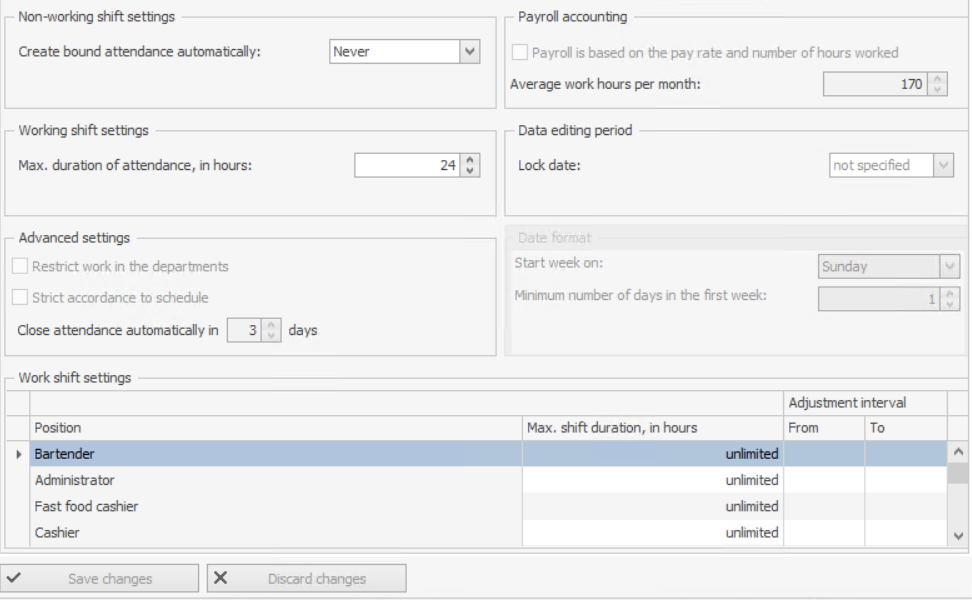 Maksymalny czas obecności pracowników i określonych stanowisk jest również wykorzystywany do kontroli czasu obecności podczas jej edycji.