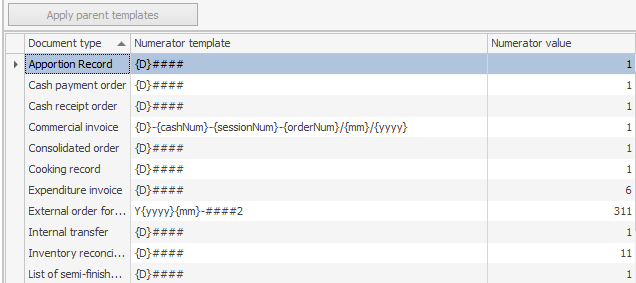 Na tej karcie możesz określić szablon automatycznego generowania numerów dla każdego typu dokumentu.