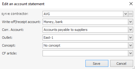 Syrve pozwala użytkownikom na import wyciągów z konta utworzonych w oprogramowaniu bankowości internetowej. W takim przypadku transakcje kredytowe i debetowe na koncie zostaną automatycznie zarejestrowane w systemie.
