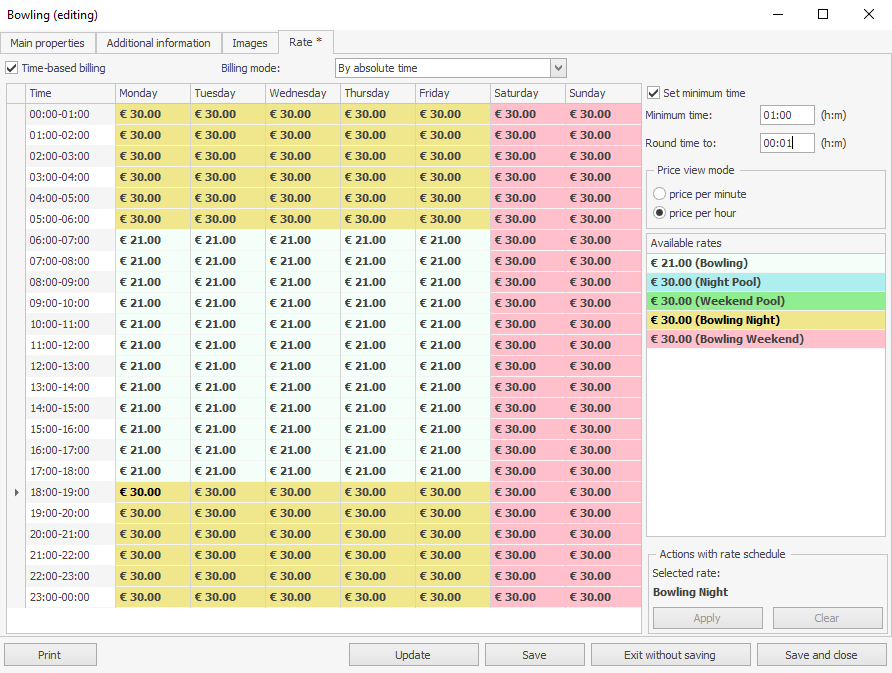 Domyślnie cały harmonogram cenowy jest wypełniony tą samą ceną. Jeśli cena zależy od pory dnia, dodaj takie stawki do harmonogramu. Szczegóły znajdziesz w przykładzie ustawień.