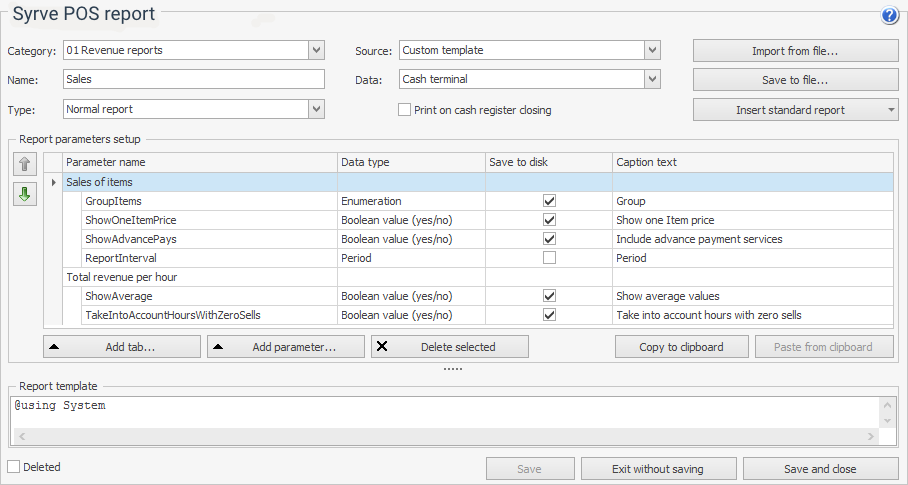 Parametry raportu użytkownika można ustawić w Syrve Office i wybrać podczas uruchamiania raportu w Syrve POS.