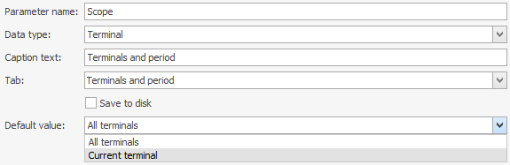 - Terminal kasowy – dla raportów zależnych od kasy fiskalnej i zmiany kasy. Raporty te można tworzyć tylko na terminalu, do którego przypisana jest kasa fiskalna i na którym jest otwarta zmiana kasy.