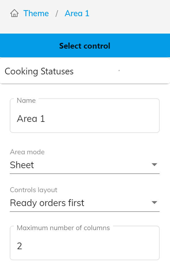 Niektóre ustawienia są dostępne zarówno w kontrolkach, jak i w obszarach motywu — na przykład wyświetlanie numeru zamówienia, czasu przygotowania, imienia klienta lub kuriera. Jeśli oba są skonfigurowane, na ekranie priorytet mają ustawienia motywu.