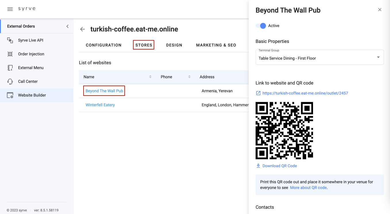 Zanim zaczniesz przyjmować zamówienia na dostawę, musisz skonfigurować usługę Syrve Live API. Proszę zapoznać się z artykułem dotyczącym ustawień Syrve Live.