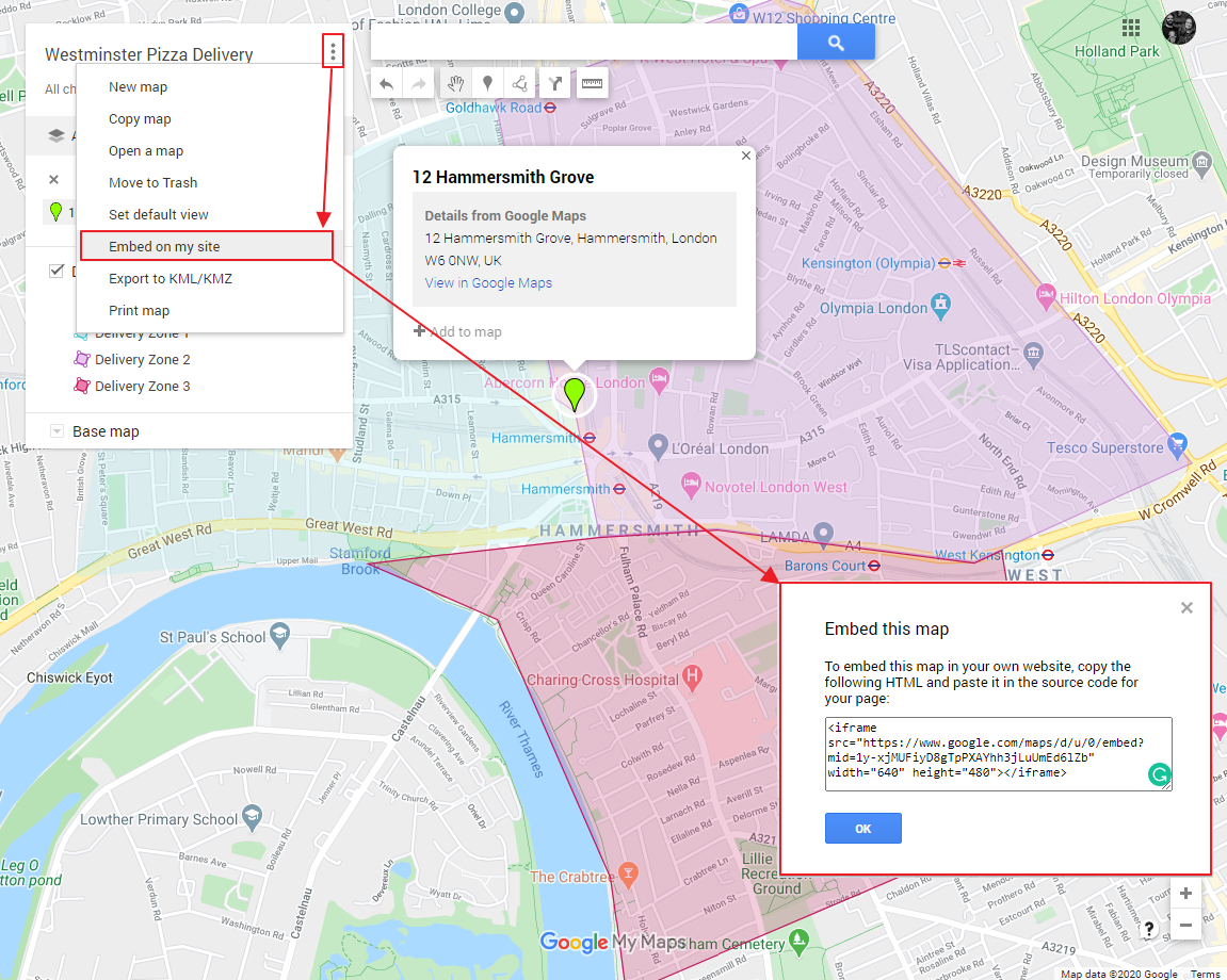 Możesz skorzystać z jednej z dostępnych usług map, takich jak Google Maps, aby narysować swoją mapę. Skopiuj kod mapy i wklej go w ustawieniach strony.