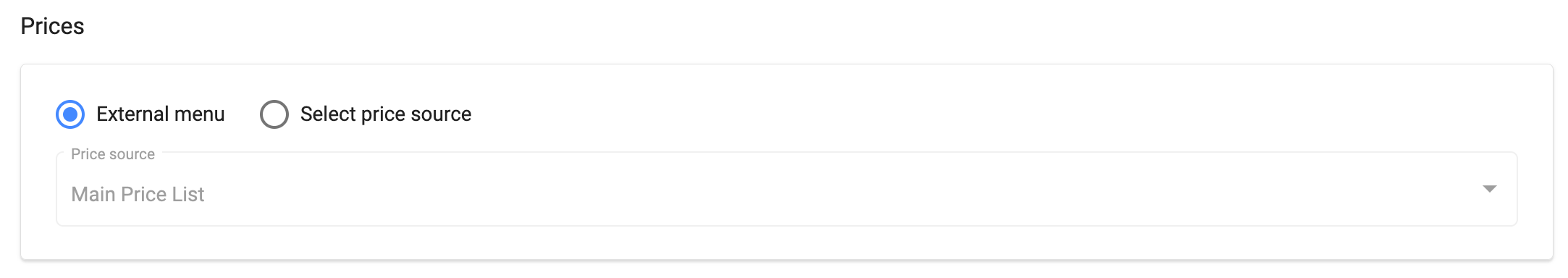 Wybierz, skąd chcesz importować ceny — z menu zewnętrznego lub cennika. Główny cennik zawiera wszystkie produkty dostępne w sprzedaży z określonymi cenami.