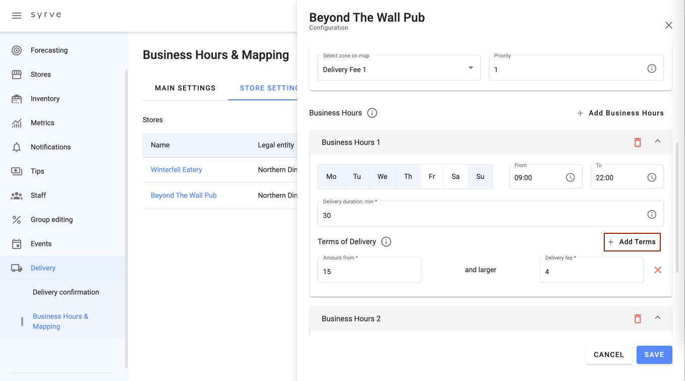 Teraz możesz przejść do Godziny pracy i Mapowanie i dodać tę Usługę dostawy na karcie Ustawienia główne, zgodnie z wyjaśnieniami w przewodniku po stronie dostawy.