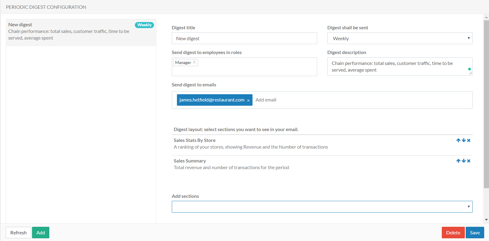 - Przejdź do Powiadomienia > Podsumowania Informacji w sekcji Ustawienia systemu i konserwacja i kliknij Dodaj.