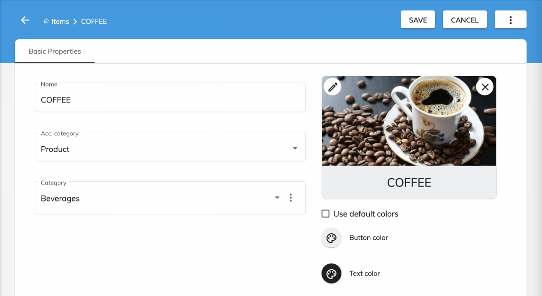 - Dodaj obrazek i wybierz kolor dla przycisku lub tekstu nazwy grupy. Szczegóły znajdziesz w artykule Obsługa listy zapasów.