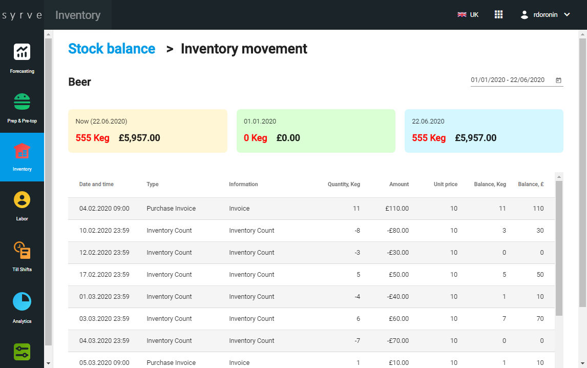 Aby kontrolować swój zapas i utrzymać wszystko w porządku, rejestruj wszystkie zakupy w Syrve, odpisuj straty i regularnie licz swój zapas.