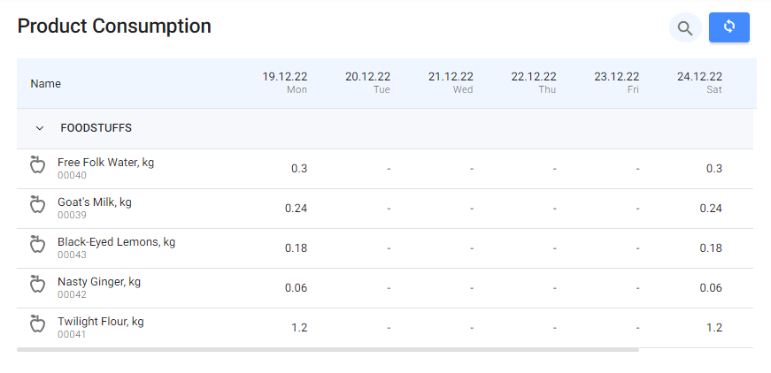 Użyj tej sekcji, aby oszacować ilość składników, które musisz zakupić na nadchodzące okresy. Prognoza opiera się na Twojej sprzedaży i jest napędzana przez silnik prognozowania włączony w aplikacji Ustawienia systemu i konserwacja.