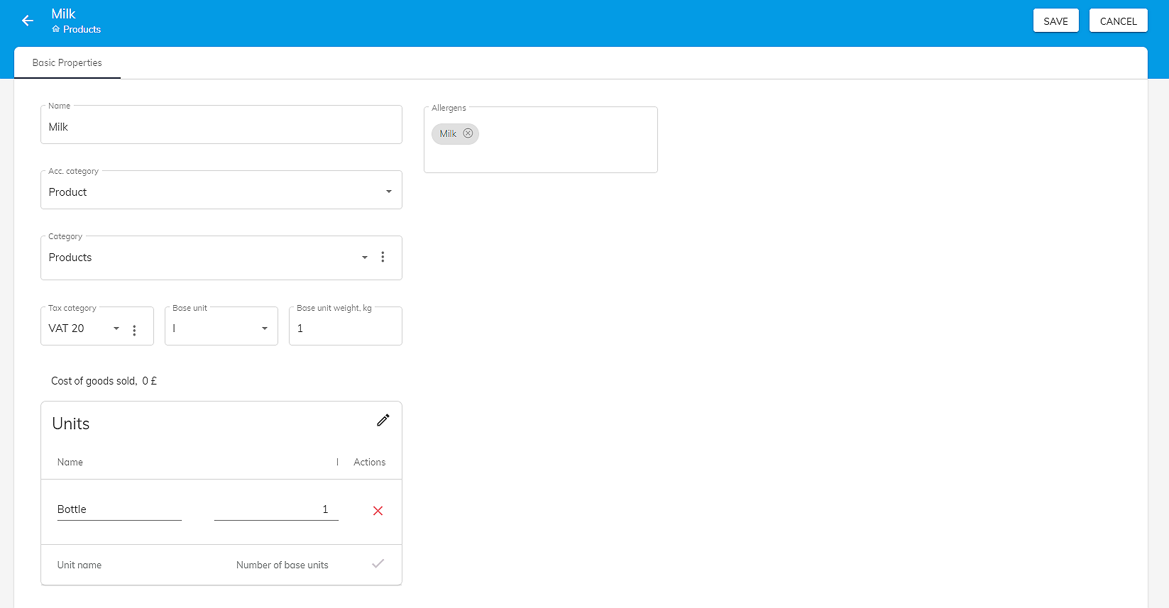 Produkty są przechowywane w magazynie i rejestrowane przy przyjęciu i wydaniu w podstawowych jednostkach miary: kilogramach, litrach, mililitrach itp. Jednak w przepisach wszystkie składniki podawane są w kilogramach. Dlatego należy określić wagę jednostki podstawowej, aby prawidłowo rejestrować wydanie składników.