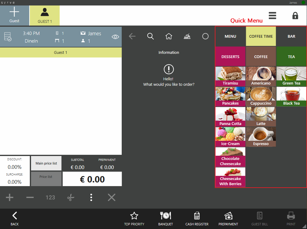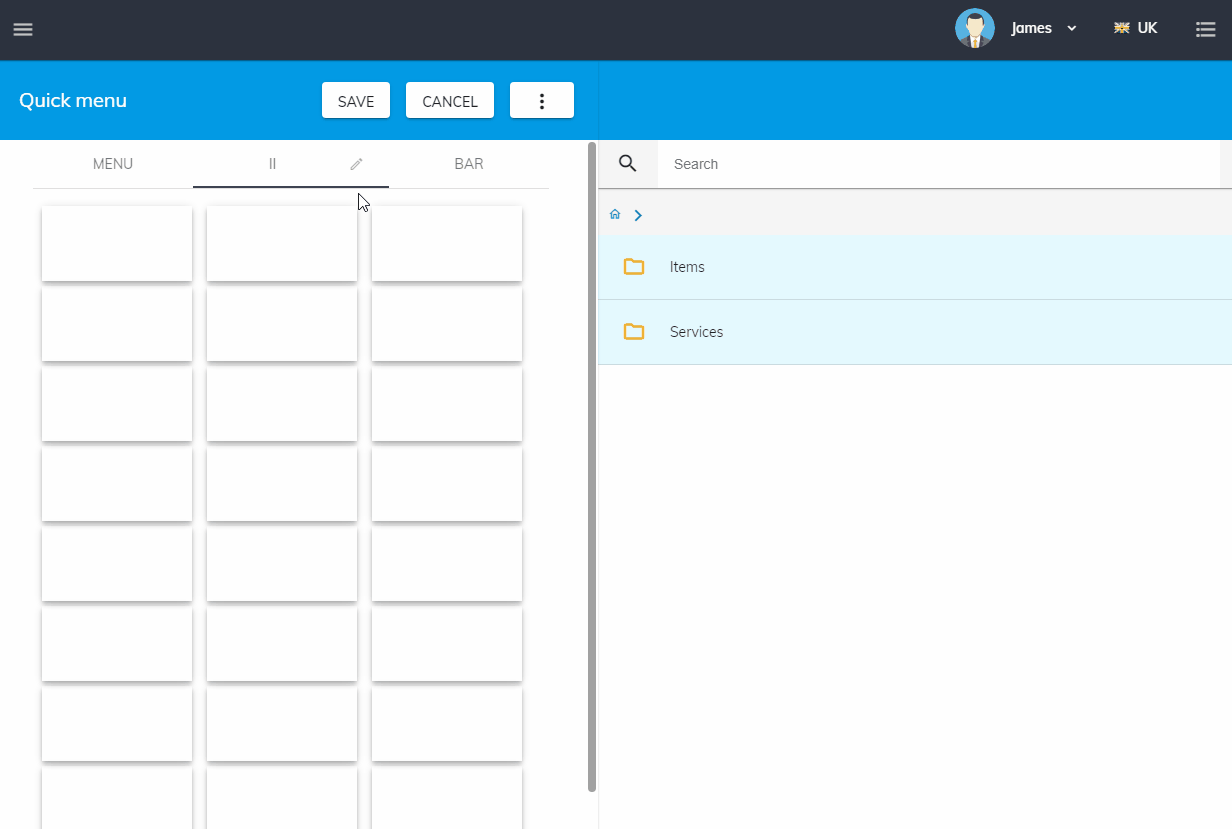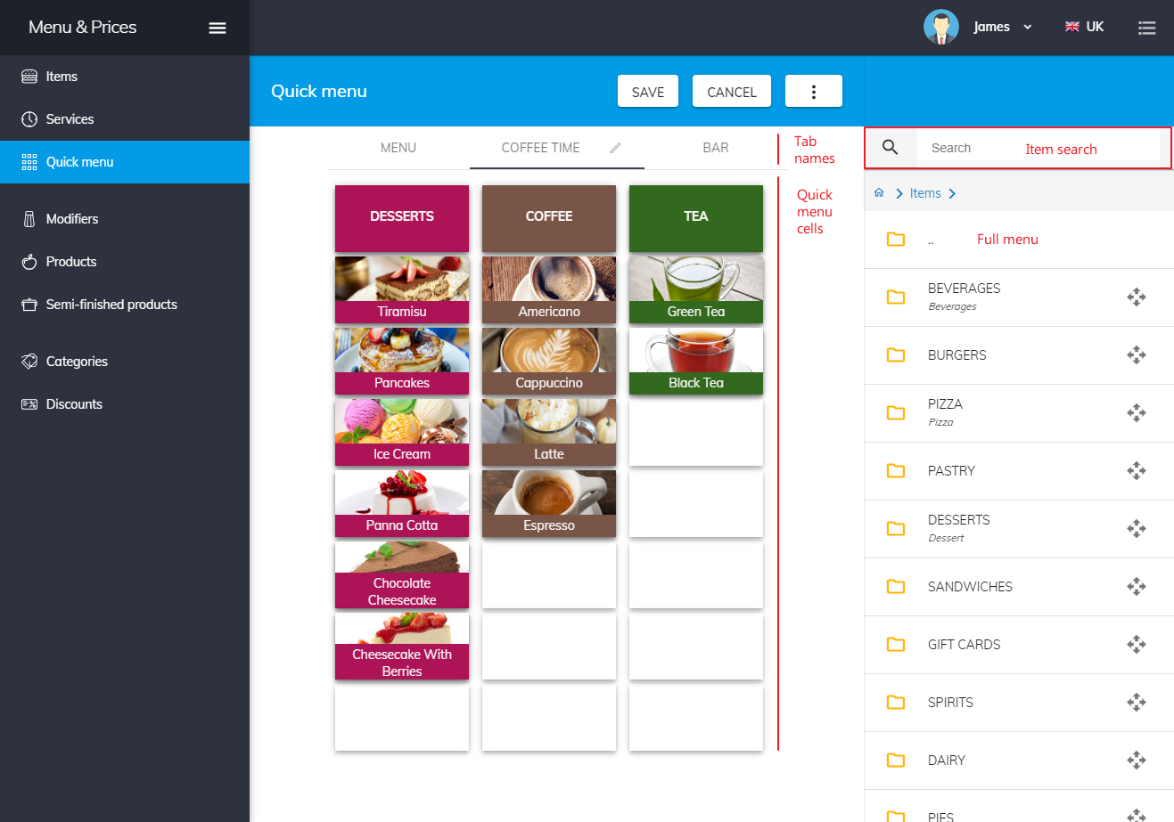 W Syrve POS szybkie menu będzie miało wygląd, który ustawisz w Web-Based Office.