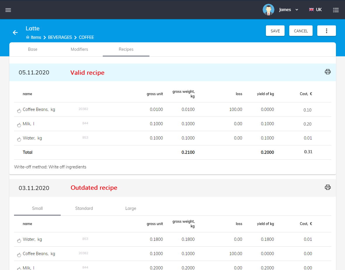 Jeśli z jakiegoś powodu musisz edytować przepis, np. zmienić ilość składników, pamiętaj, że koszt zostanie przeliczony dla całego okresu, w którym przepis był używany.