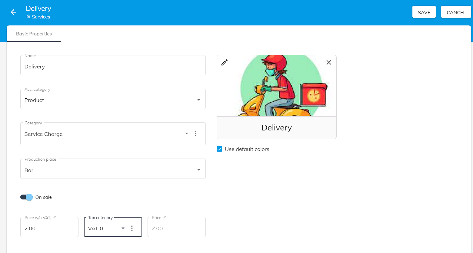 Włącz sprzedaż usługi, aby to zrobić, włącz opcję Na sprzedaż. Wprowadź cenę zawierającą VAT i wybierz kategorię podatkową.