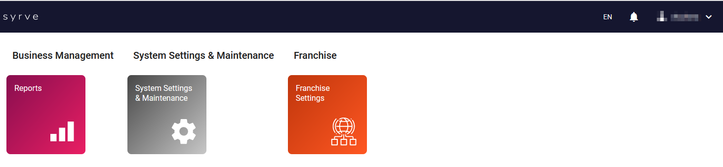 Syrve Franchise jest instalowany przez zespół wsparcia Syrve. Składa się z trzech głównych sekcji: