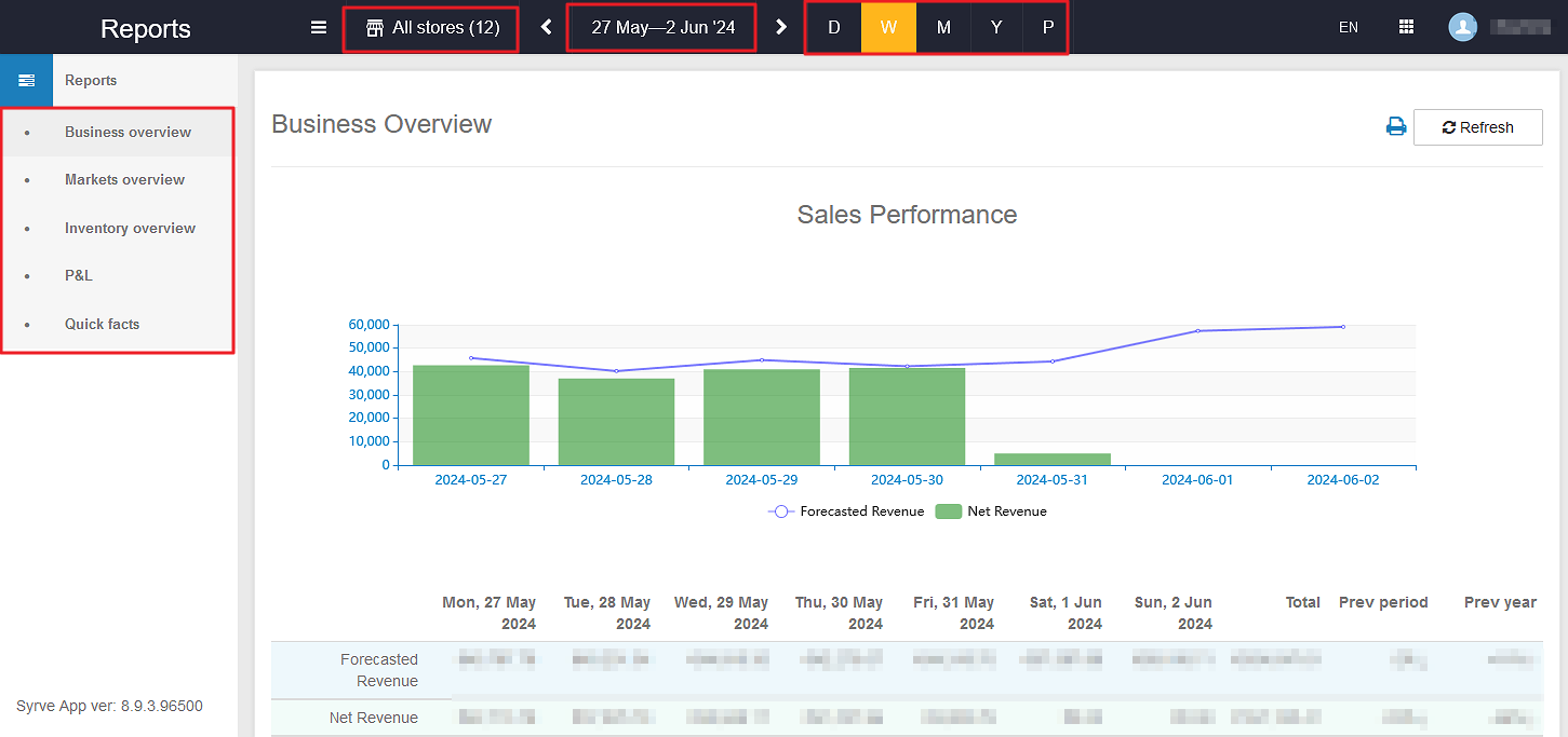Tutaj możesz przeglądać raporty dla wszystkich sklepów w sieci lub wybrać jeden lub kilka sklepów do przeglądu. Możesz także skonfigurować daty i okres, za który raport jest generowany — dzień, tydzień, miesiąc, rok lub cały okres działalności sklepu.