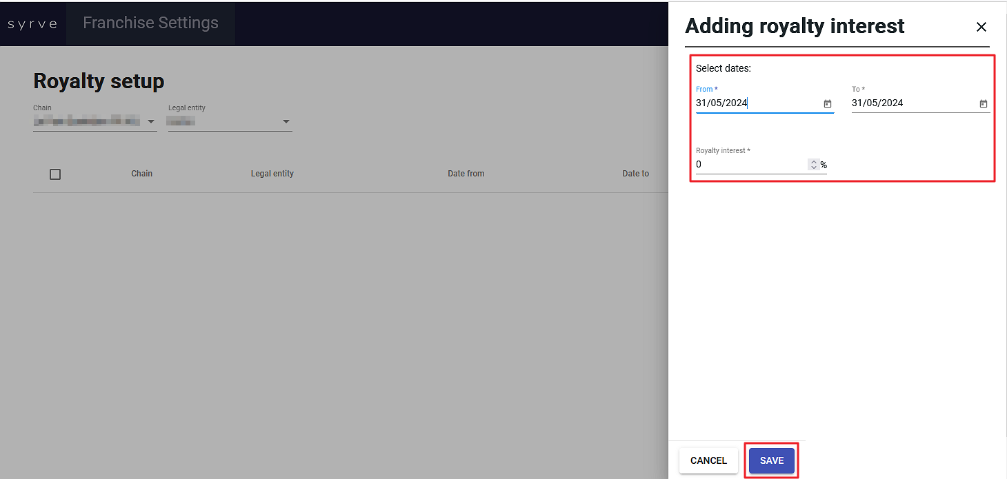 Te ustawienia pozwalają ustawić indywidualną wysokość tantiemy dla każdego franczyzobiorcy. Otrzymane tantiemy skonfigurowane w aplikacji Syrve Franchise będą wyświetlane w raportach, zapewniając przejrzystość płatności i aktualność danych.