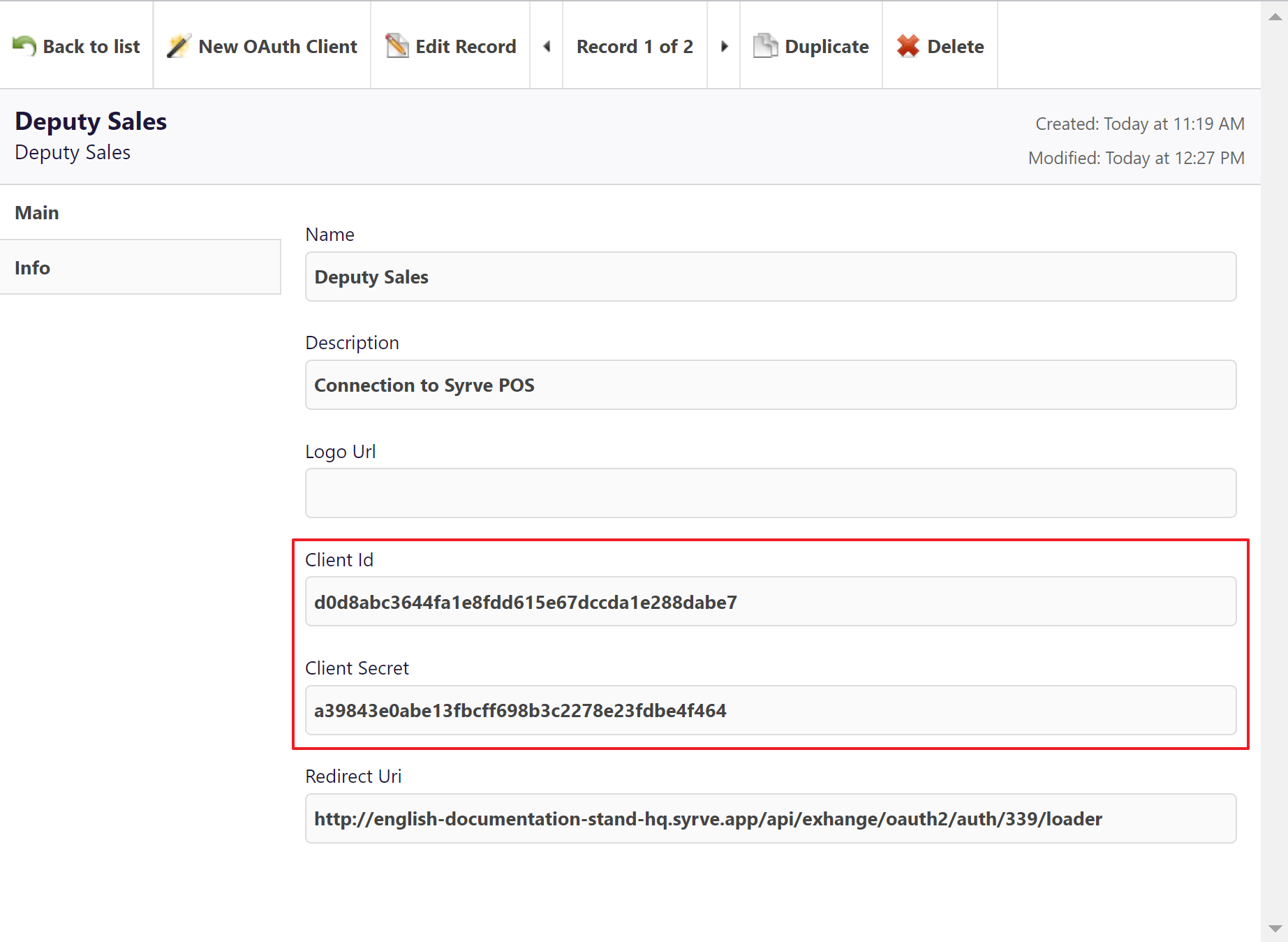 Zostaniesz przeniesiony do szczegółów profilu, gdzie możesz skopiować swój Client ID i Client Secret z Deputy. Zanotuj te dane, ponieważ będą potrzebne później. Nie zamykaj jeszcze tej strony.