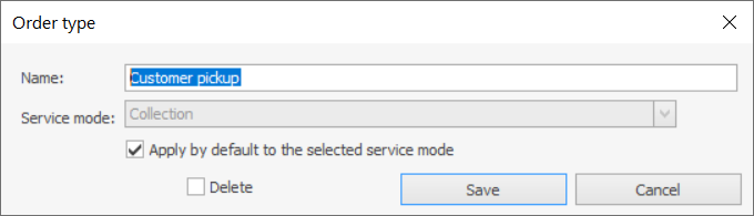 - Określ typy zamówień dla odbioru, dostawy i na miejscu (patrz krok 4).