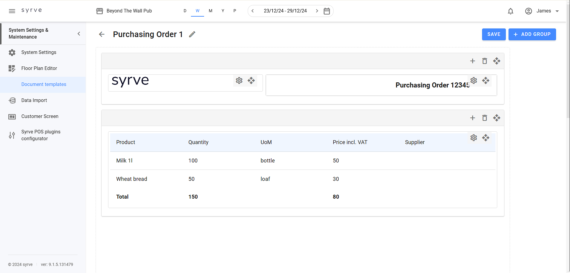 W aplikacji Syrve możesz ustawić układ dokumentów tworzonych w systemie. Aby to zrobić, musisz dodać niestandardowe szablony w Ustawienia systemu i konserwacja > Sklepy > Szablony dokumentów.