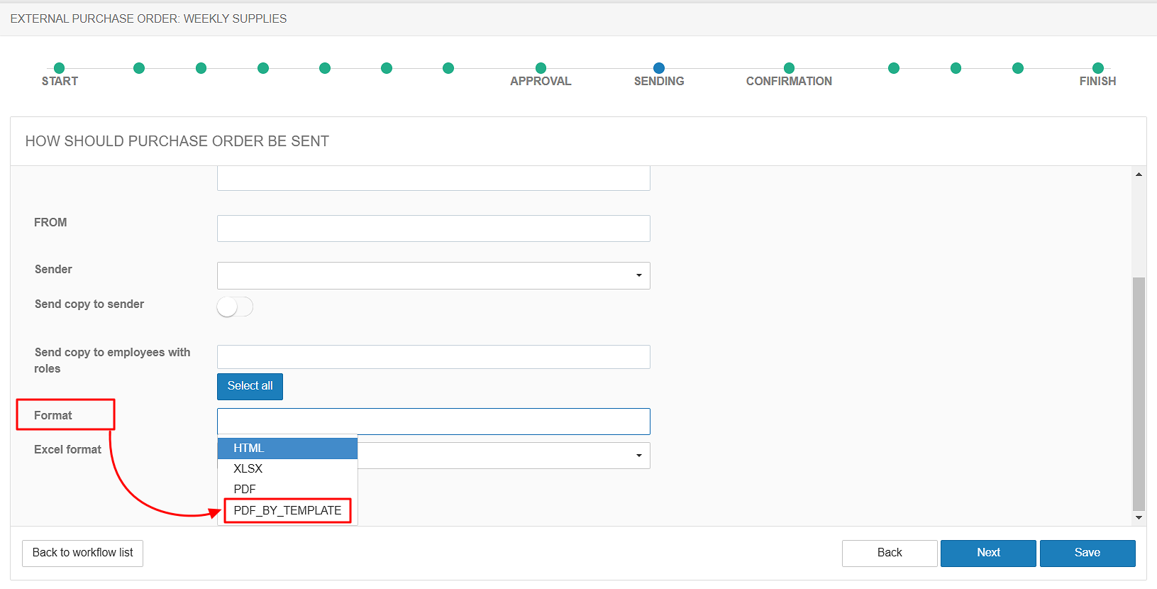 - Jeśli edytujesz jeden z wcześniej utworzonych procesów, przejdź bezpośrednio do kroku WYSYŁANIE.