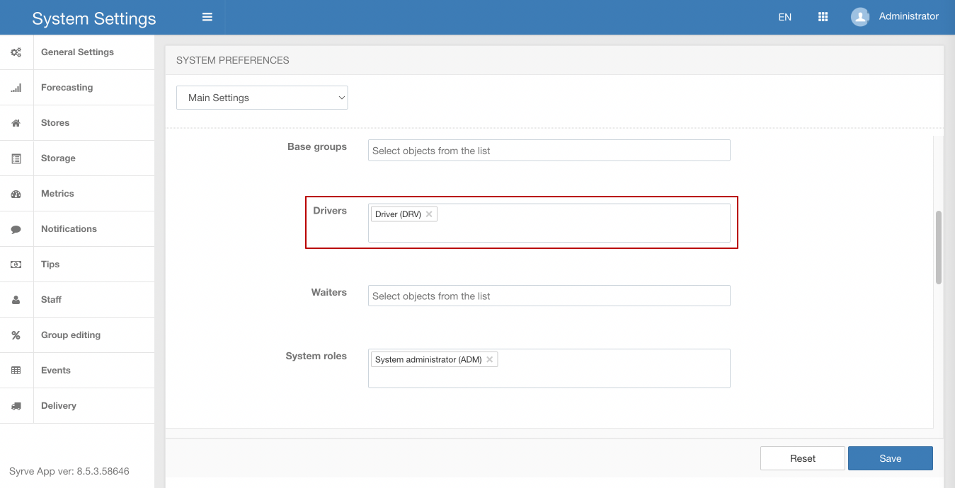 W ustawieniach ogólnych określono, które stanowiska dotyczą kierowców. Na ekranie Syrve Radar będą wyświetlani tylko pracownicy na tych stanowiskach.