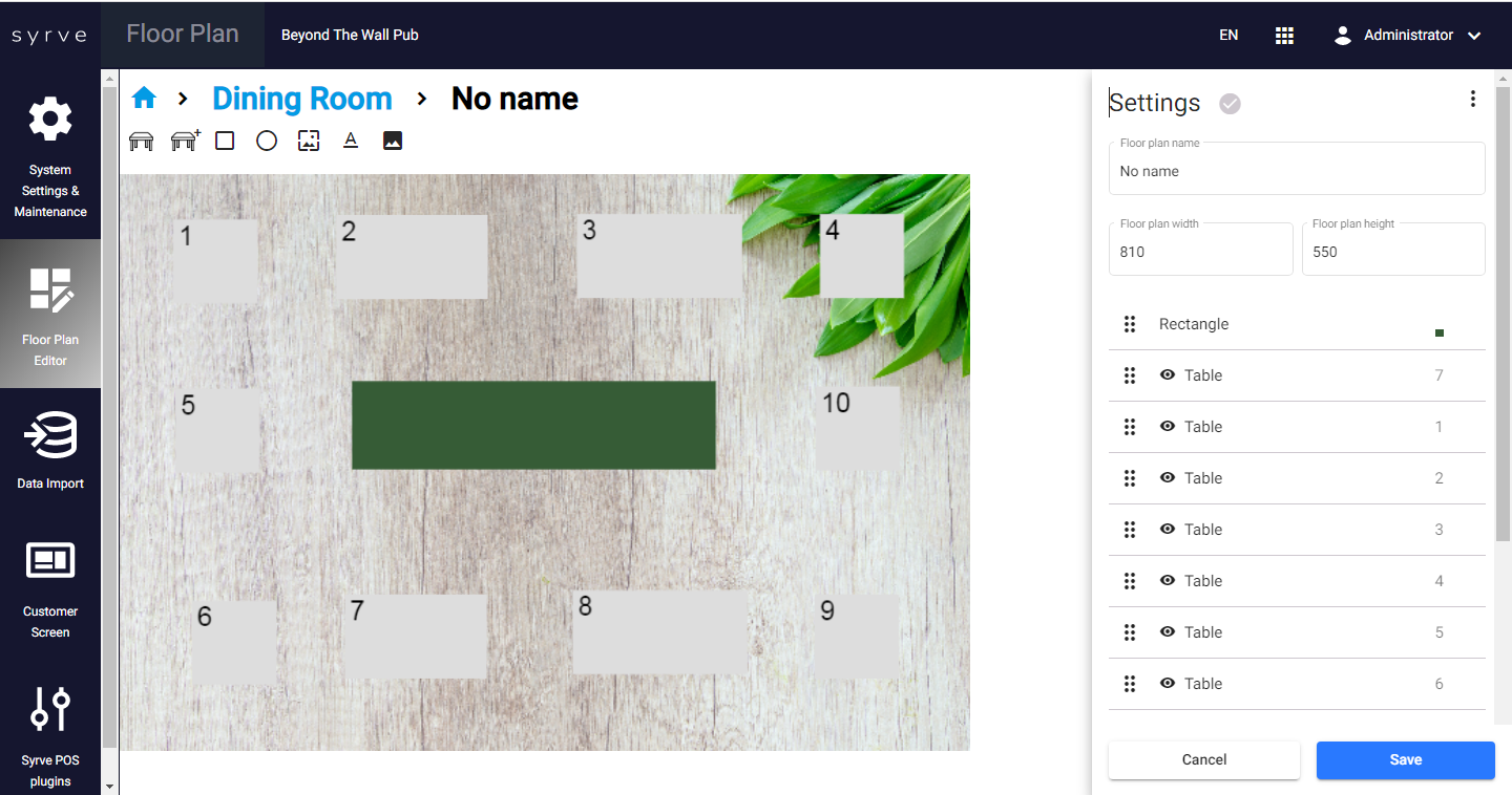 Edytor Planu Piętra to aplikacja zaprojektowana do dostosowywania planu piętra sklepu wyświetlanego na POS. Możesz układać obiekty na ekranie dokładnie tak, jak są w rzeczywistości. Pomoże to kelnerom szybciej zlokalizować i wybrać odpowiedni stolik.