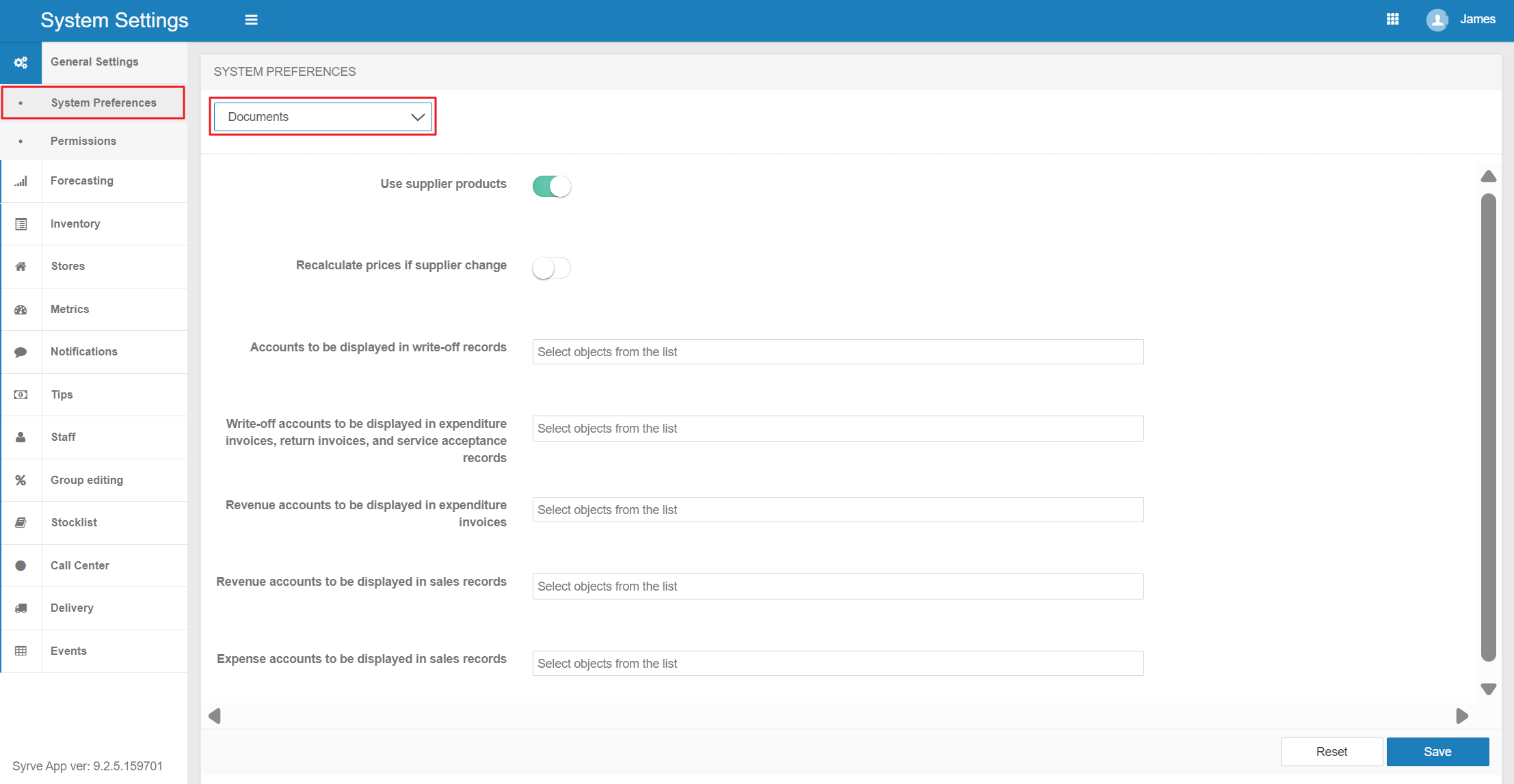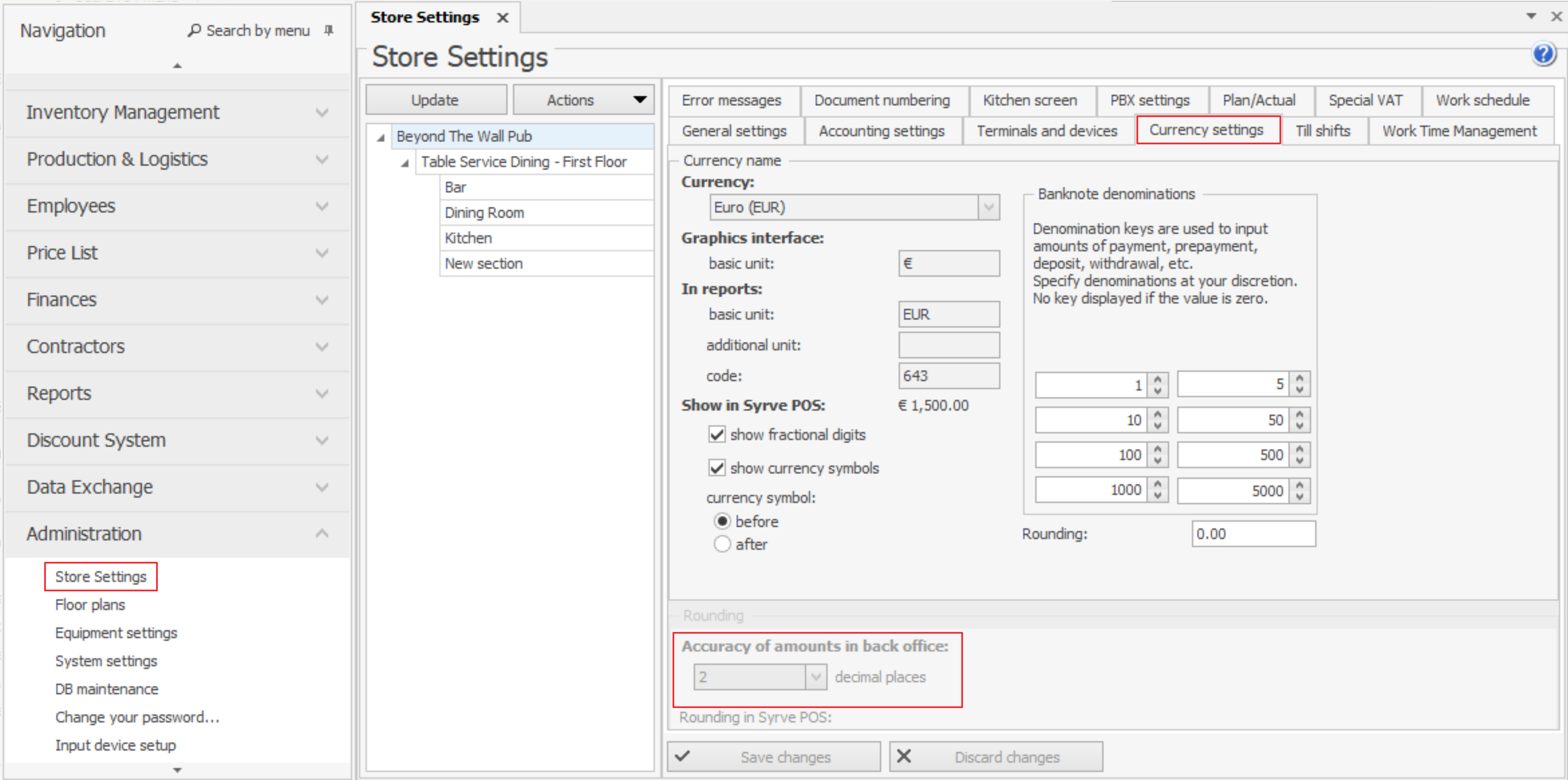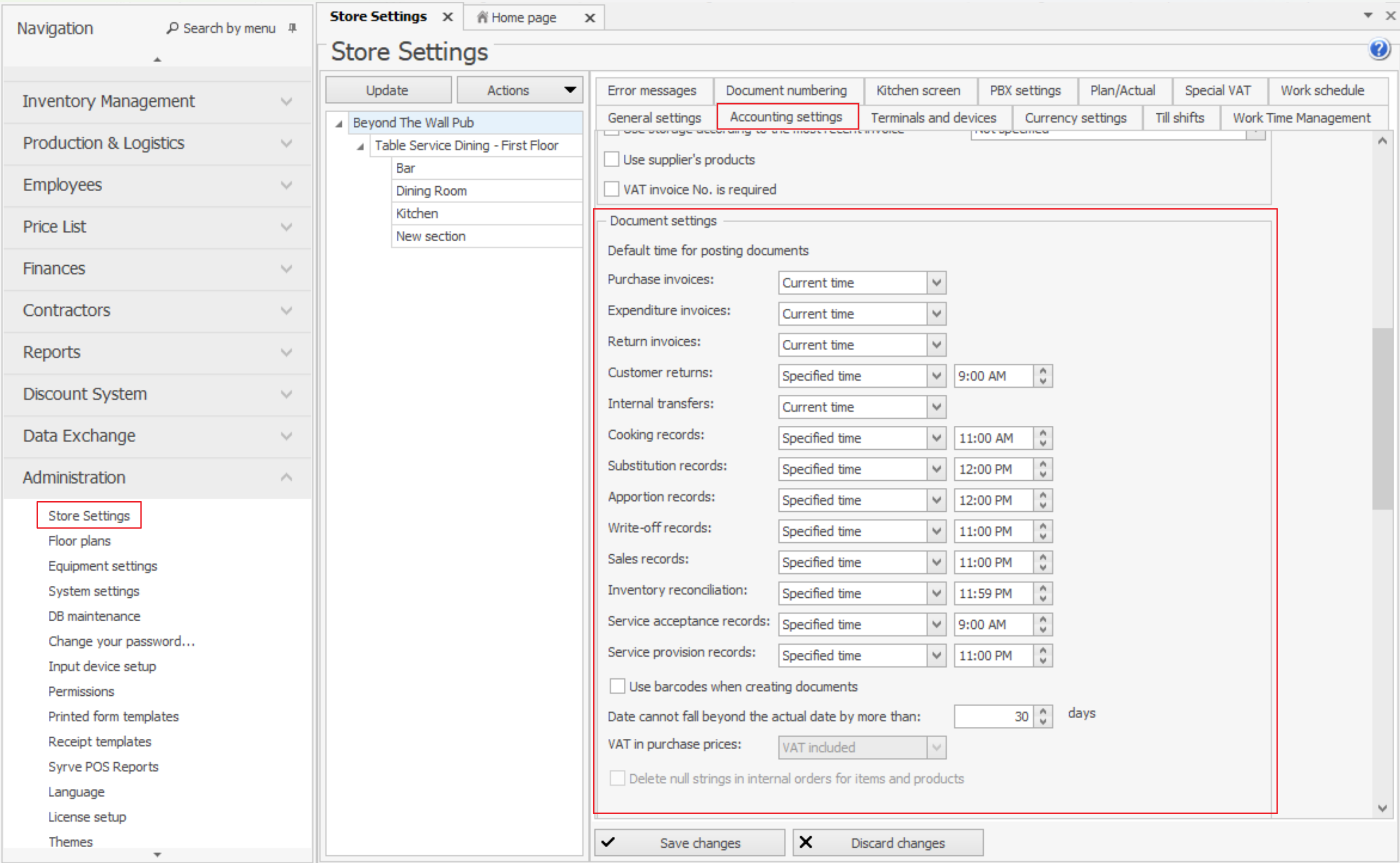 Dokumenty dostępne w aplikacji Syrve pobierają niektóre ustawienia z aplikacji Syrve Office: