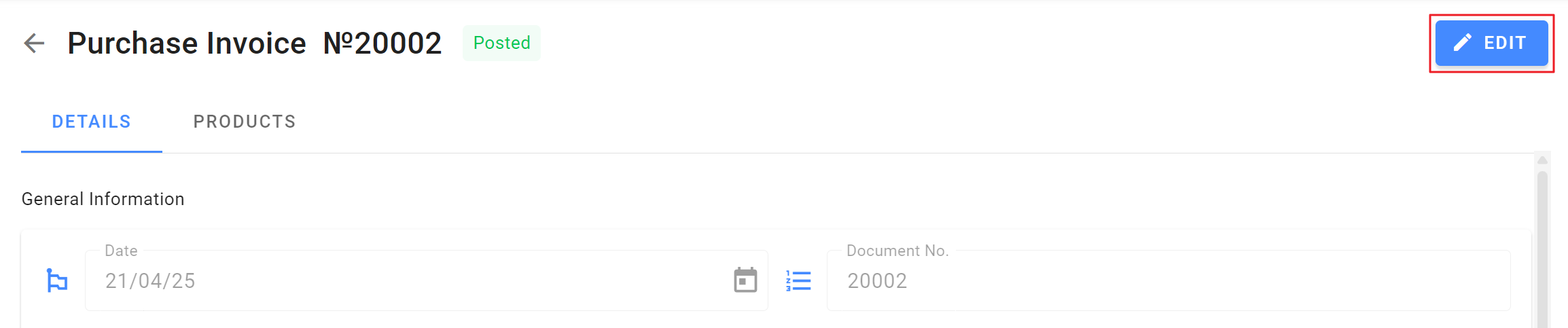 Alternatywnie kliknij numer dokumentu na liście, a następnie kliknij Edytuj.