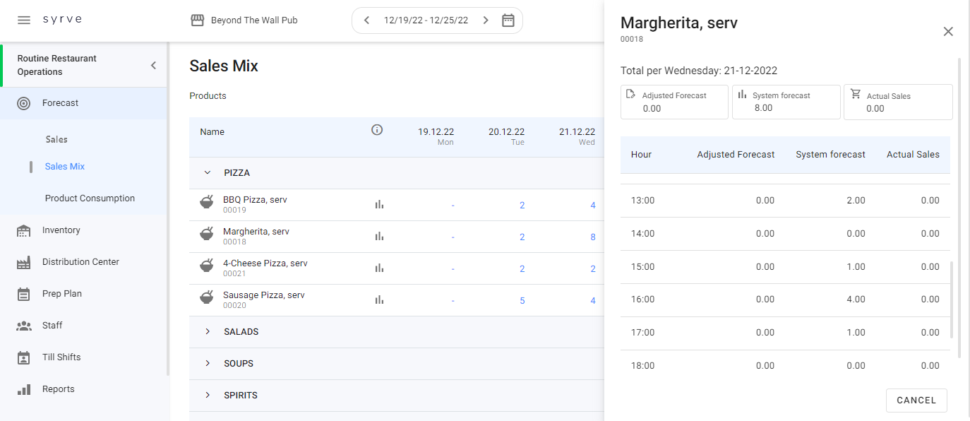 Użyj tej sekcji, aby oszacować ilość składników, które musisz zakupić na nadchodzące okresy. Prognoza opiera się na Twojej sprzedaży i jest napędzana przez silnik prognozowania włączony w aplikacji Ustawienia systemu i konserwacja.