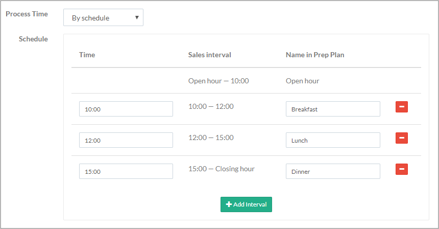 - Według harmonogramu aby podzielić dzień na niestandardowe przedziały czasowe. Kliknij przycisk Dodaj przedział i wpisz godzinę rozpoczęcia drugiego przedziału. Pierwszy przedział jest generowany automatycznie.