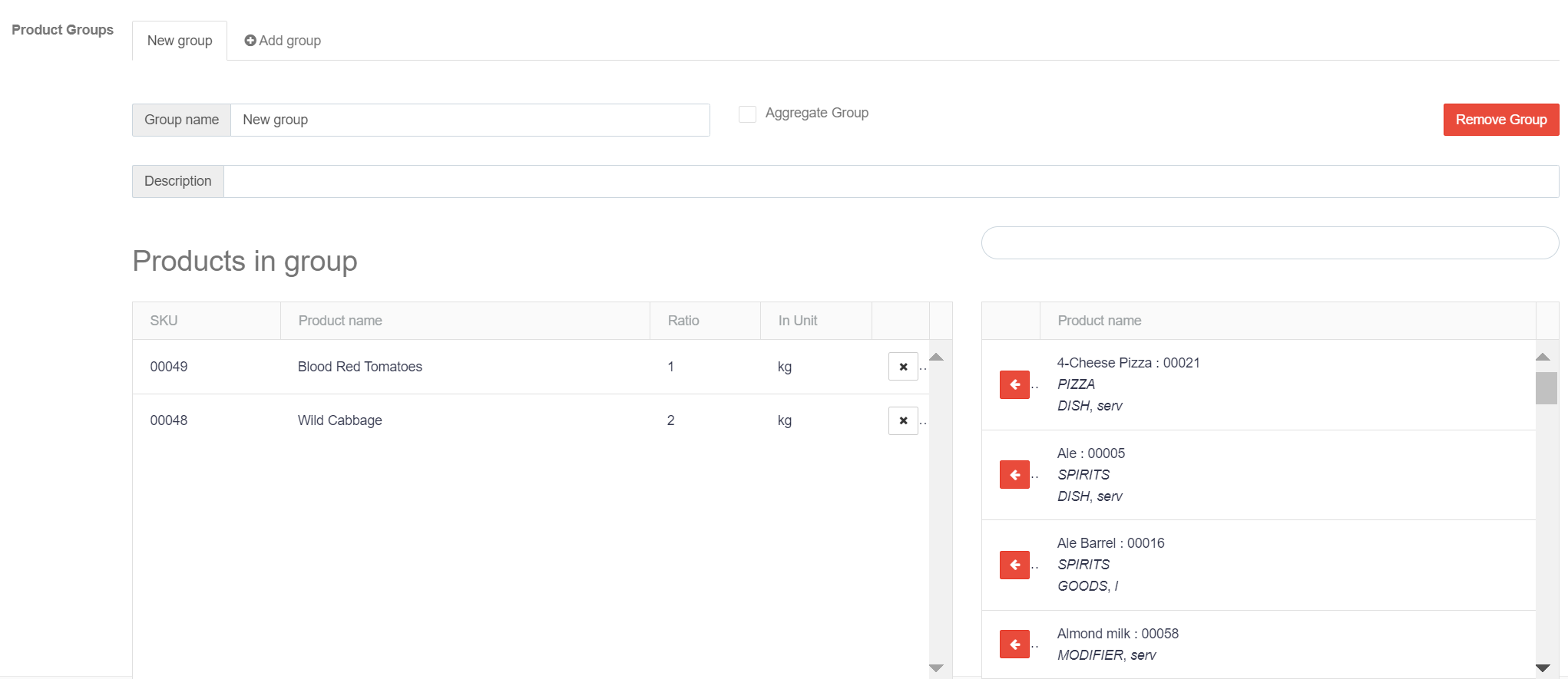 - Jeśli musisz przygotować określony typ pozycji, ale jej odmiana nie jest istotna, zaznacz opcję Grupa zbiorcza. Na przykład zwykle serwujesz sałatki na śniadanie, ale każdego dnia inną: sałatkę warzywną, sałatkę letnią itd. W takim przypadku utwórz grupę i dodaj wszystkie serwowane sałatki. Na podstawie historii sprzedaży system oszacuje ilość do przygotowania na dany dzień, ale to Ty decydujesz, którą sałatkę ugotować.