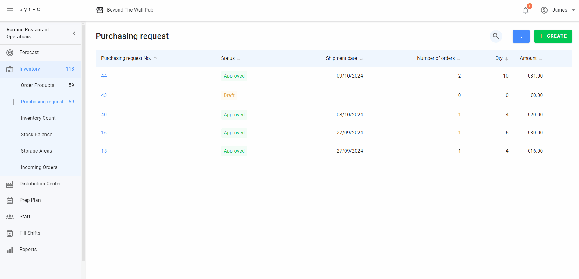 Aby utworzyć zapytanie o zakup produktów i artykułów, szef kuchni lub inny pracownik kuchni powinien zalogować się do aplikacji Syrve i: