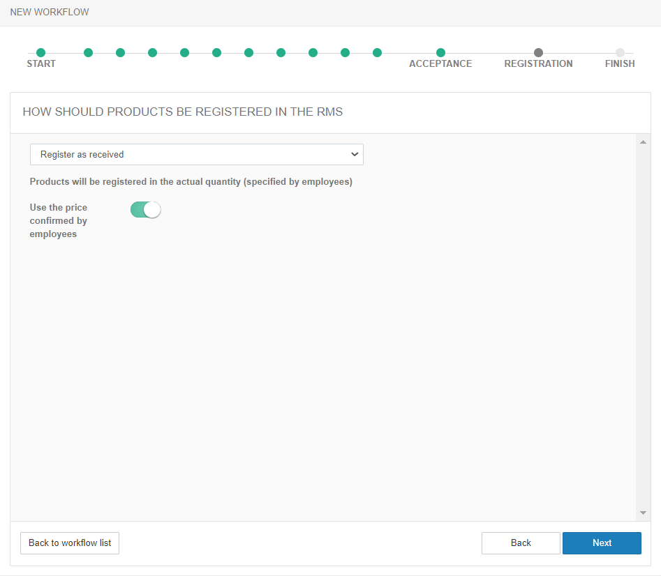 Określ, jaka cena powinna być użyta do rejestracji produktów, korzystając z opcji Użyj ceny potwierdzonej przez pracowników: