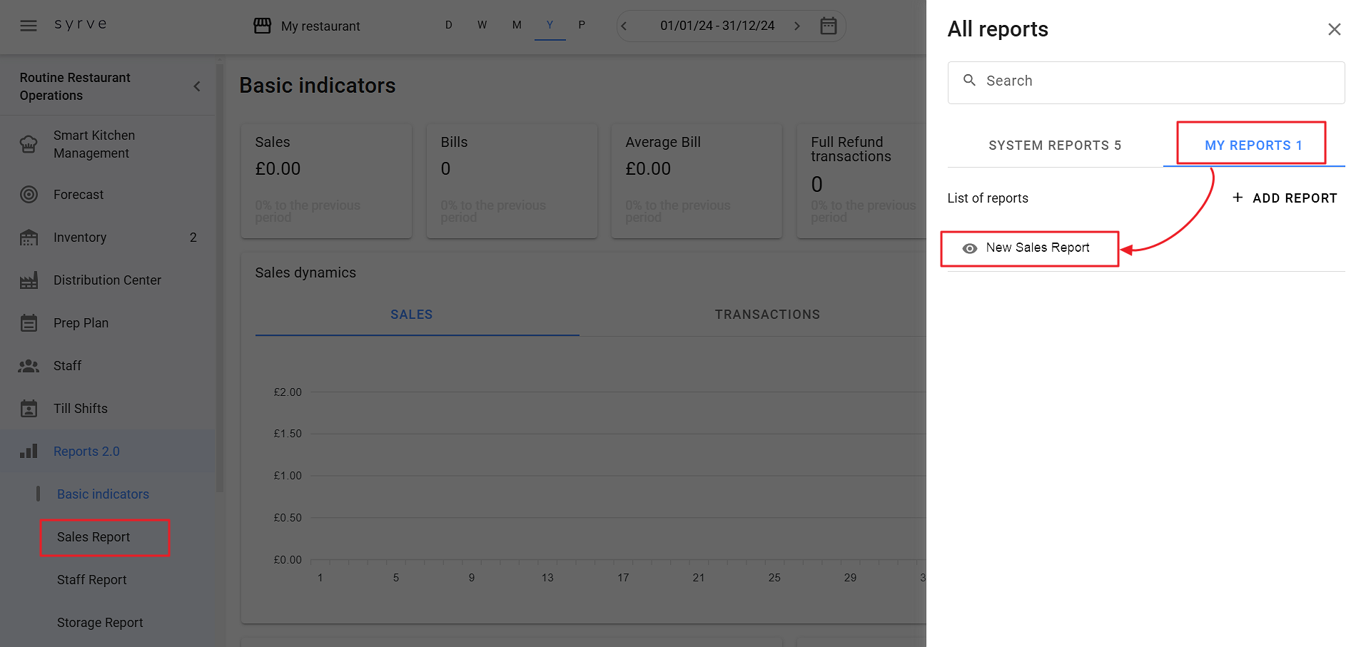 W aplikacji Syrve przejdź do Raporty 2.0.