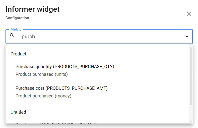 Wybierz metrykę z listy. Wpisz pierwsze symbole wymaganej metryki w pasku wyszukiwania, aby szybciej ją znaleźć.