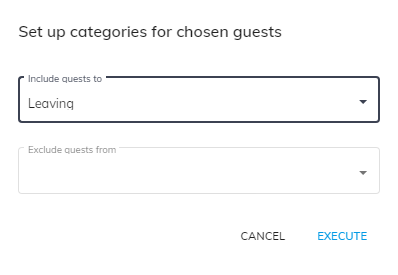 Aby włączyć swoich gości do kategorii, kliknij na kafelku grupy i wybierz Ustaw kategorie, wybierz kategorię i kliknij Wykonaj.
