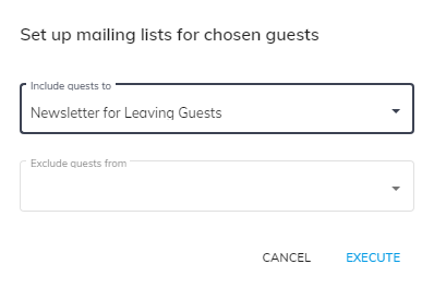 Aby dodać swoich gości do listy mailingowej, kliknij na kafelku grupy i wybierz Ustaw listy mailingowe, wybierz listę i kliknij Wykonaj. Po wykonaniu tej czynności klienci z tej grupy będą otrzymywać newslettery.