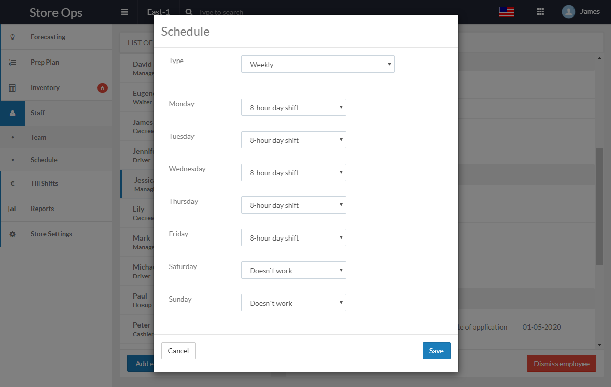 - Następnie przejdź do Codzienne Operacje Restauracji > Personel > Harmonogram.